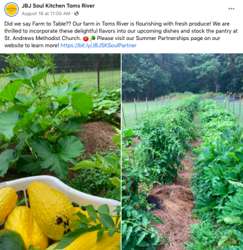Saint Andrew UMC partners with JBJ Soul Kitchen to provide vegetables from our garden to address issues of food insecurity in Toms River. The community kitchen serves nutritious, culinary dishes designed by Soul Kitchen Chefs in abeautiful restaurant atmosphere.